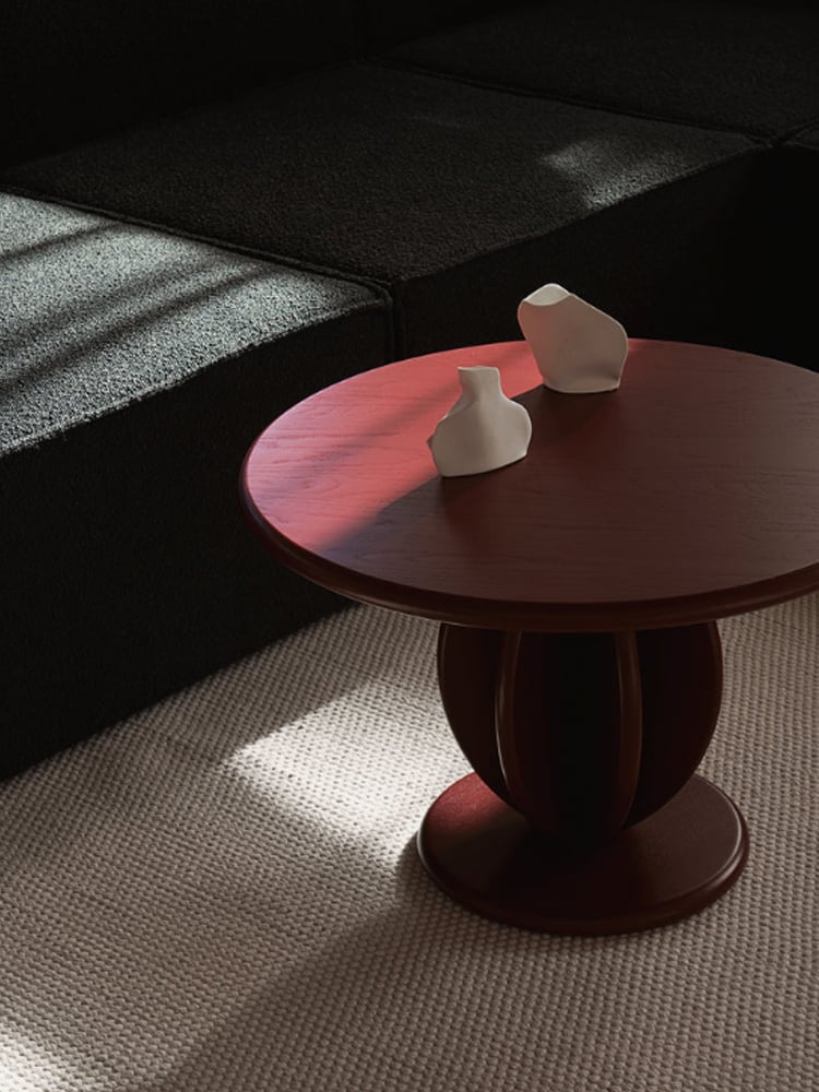CITRUS is a sculptural and elegant coffee-table. The combination of rounded lines, and solid wood, gives it sensual rhythm and makes it a striking addition to any space—both private and public. Also available as a coffee table.