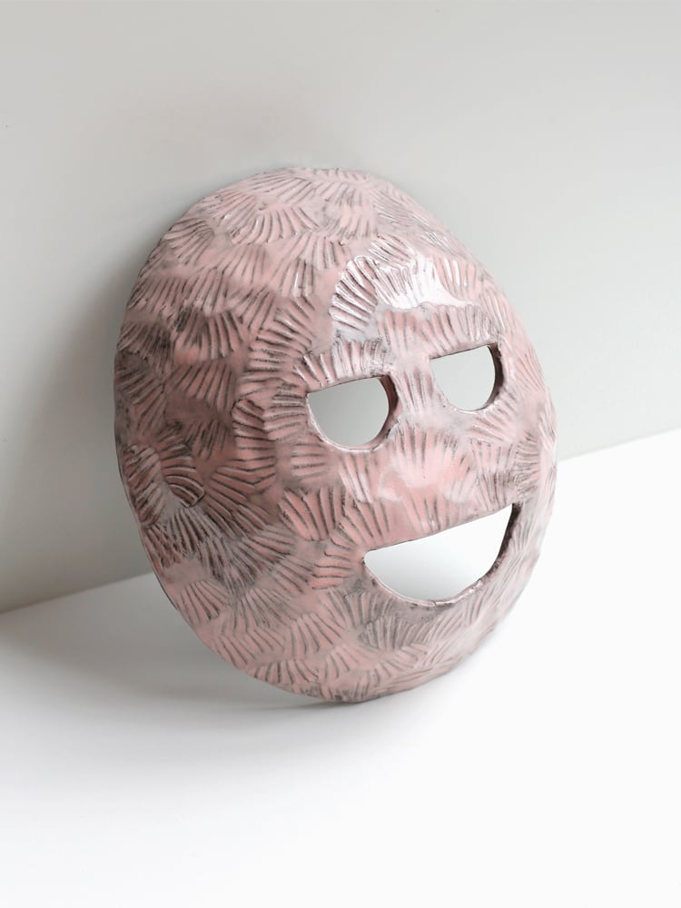 This is a unique, one-off, handmade, decorative wall mask made of ceramic with a lush, glossy pink enamel finish. Made by Sylvain Willenz in his ceramic workshop in Belgium. An optional steel display stand is available on demand. Other colours in stock, available on request.